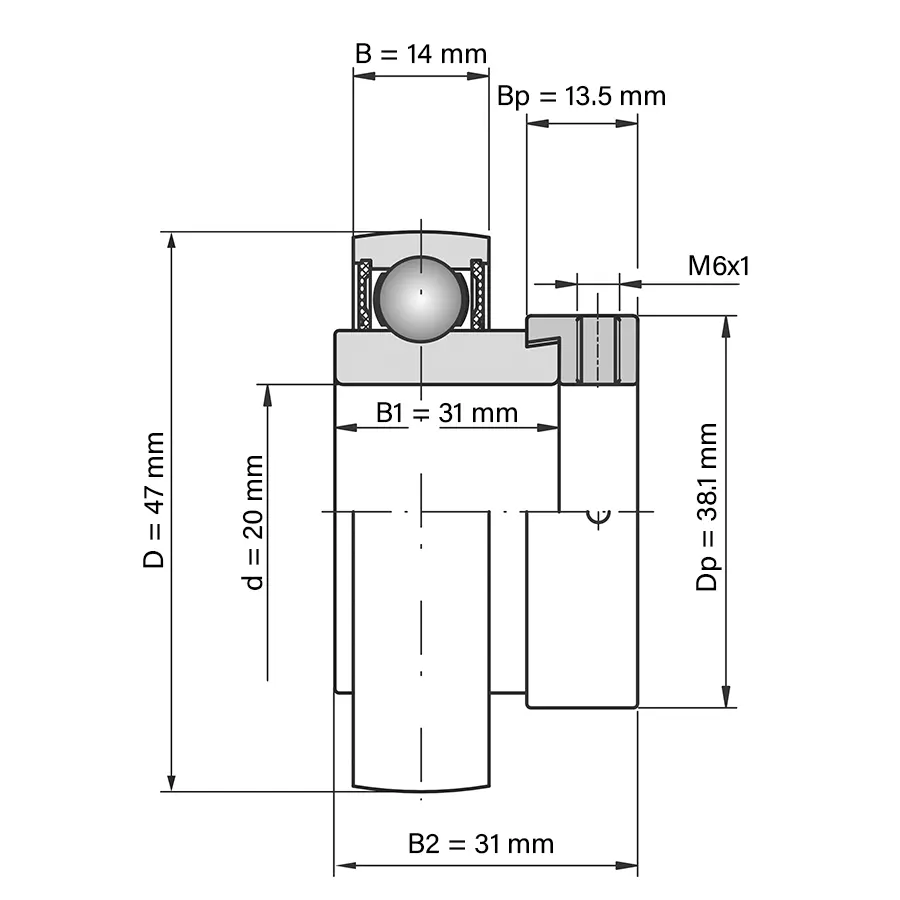 Ugradni kuglični ležajevi za kućišta: UY 204